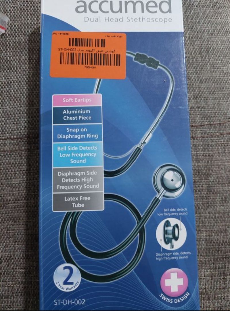 گوشی پزشکی (استتوسکوپ) دوپاویون اکیومد مدل ST-DH-002، محصولی با کیفیت بالا و طراحی کاربردی است که برای تشخیصهای دقیق در معاینه بیماران مورد استفاده قرار میگیرد. این مدل با بهرهگیری از تکنولوژی دو پاویون (دو سر) امکان شنود بهتر صداهای قلب، ریه، و سایر ارگانها را با دقت و وضوح بالا فراهم میکند.